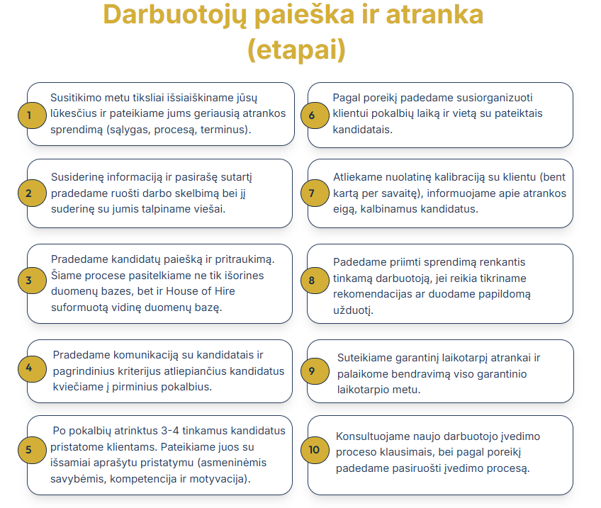 Profesionali atranka, kuri taupo jūsų laiką. Greita kalibracija, aiški komunikacija ir stiprūs kandidatai.